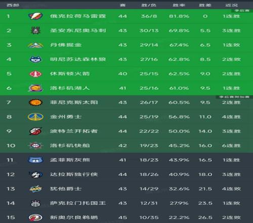西部最新积分榜