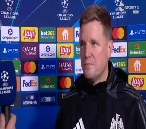 本赛季欧冠联赛阶段第6轮,纽卡斯尔客场2-2战平勒沃库森,纽卡主帅埃迪-豪赛后接受了TNT体育的采访。