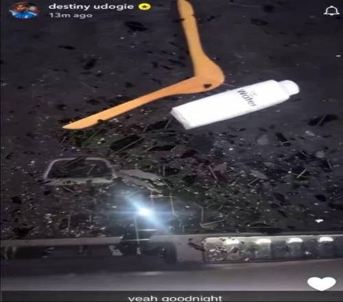 乌多基晒出了自己的汽车的照片,可以看到,他的路虎揽胜后玻璃被砸碎,后备箱里还散落着玻璃碎片,旁边还有一个木制衣架和一个水箱,他配文:“太好了,晚安”。